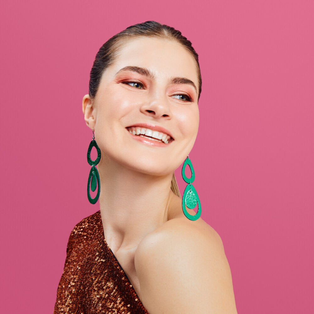 ”Kun leikkasin ensimmäiset nahkasulat keittiösaksillani, en olisi uskonut, että muutkin niihin ihastuvat. Suunnittelen koruja, joita haluan itsekin käyttää. Sellaisia, jotka sopivat arkeen ja juhlaan. Viimeistelen aina asuni korvakoruilla samaan tapaan kuin joku toinen punaa huulensa.